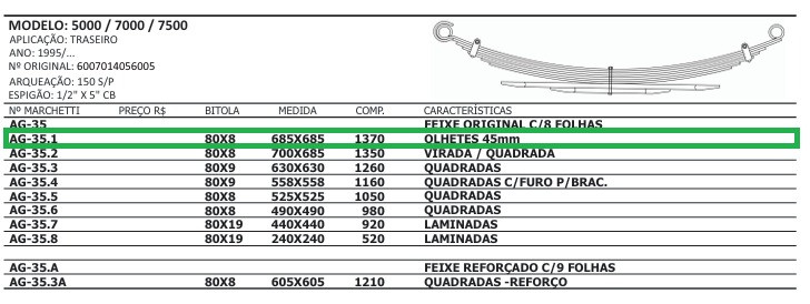 Mola Mestre Traseira Agrale 5000 / 7000 / 7500